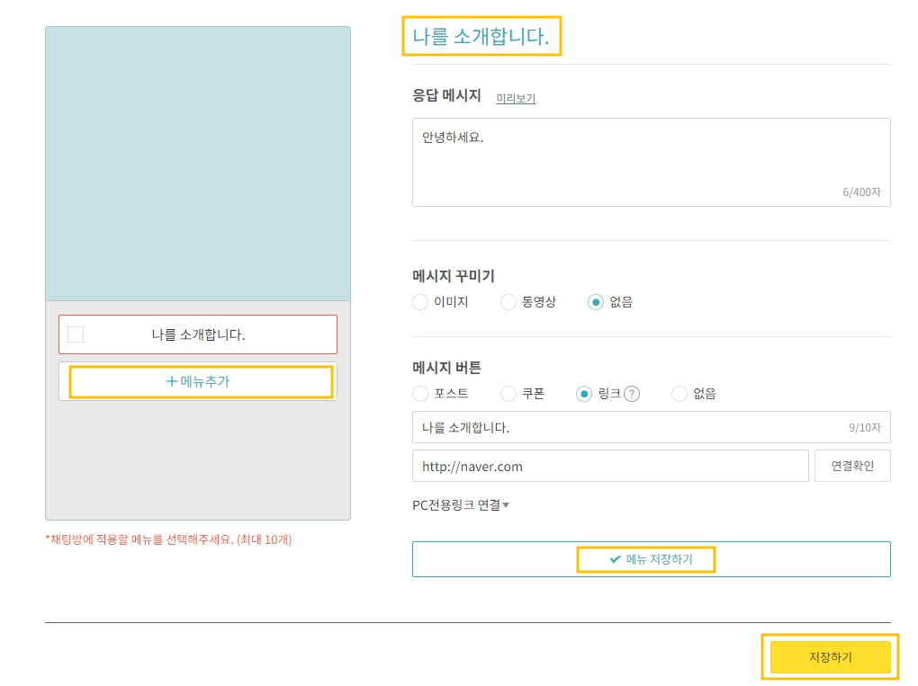 자동 상담을 진행하기 전에 내용들을 세팅해 놔야 합니다. 그렇다면 어떤 내용으로 세팅 해놔야할까요?